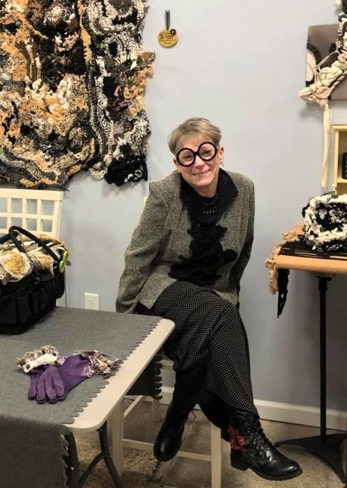 Several years ago, after visiting Artful Dimensions Gallery in Fredericksburg, she was inspired to take advantage of her fine art training and she became a fiber artist. Sally concentrates on free-form crochet as a technique in creating fashion for the body and the home. Her work is displayed at Artful Dimensions Gallery in Fredericksburg, Virginia.